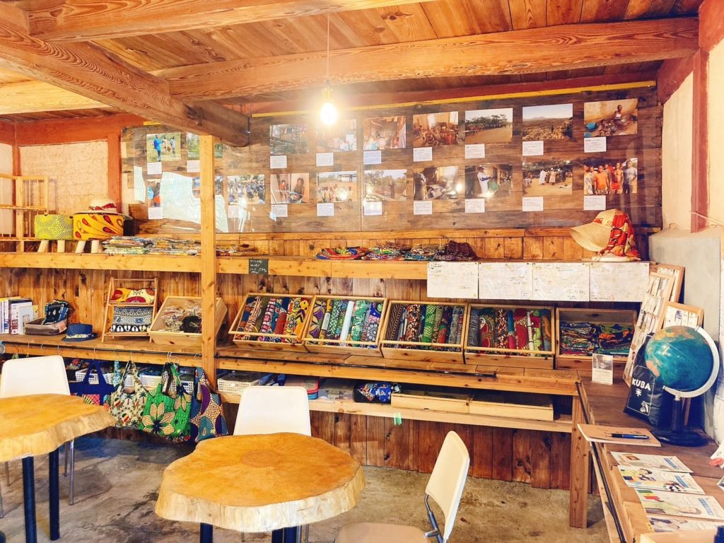 現在はハンドメイドの作業場として、アフリカ布を並べたり、カメルーンで撮影した思い出の写真を飾ったりと、旅とものづくりの記憶が重なる場所になっています。