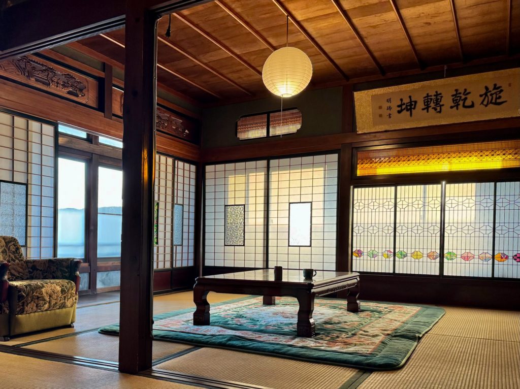 当宿は、四国の山々に囲まれた田園地域の中にあります。日本の都会とは違う、ゆったりとした時間が流れる場所です。建物は築100年以上の歴史を持つ農家の古民家で、本畳や立派な柱や梁、障子越しの光から、昔ながらの日本の住まいの空気を感じていただけます。